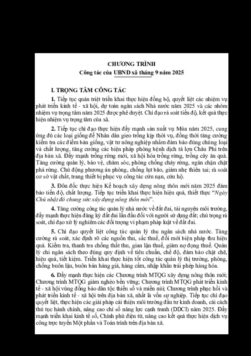 | Tiêu đề văn bản | Công tác của UBND xã tháng 9 năm 2025 | ||