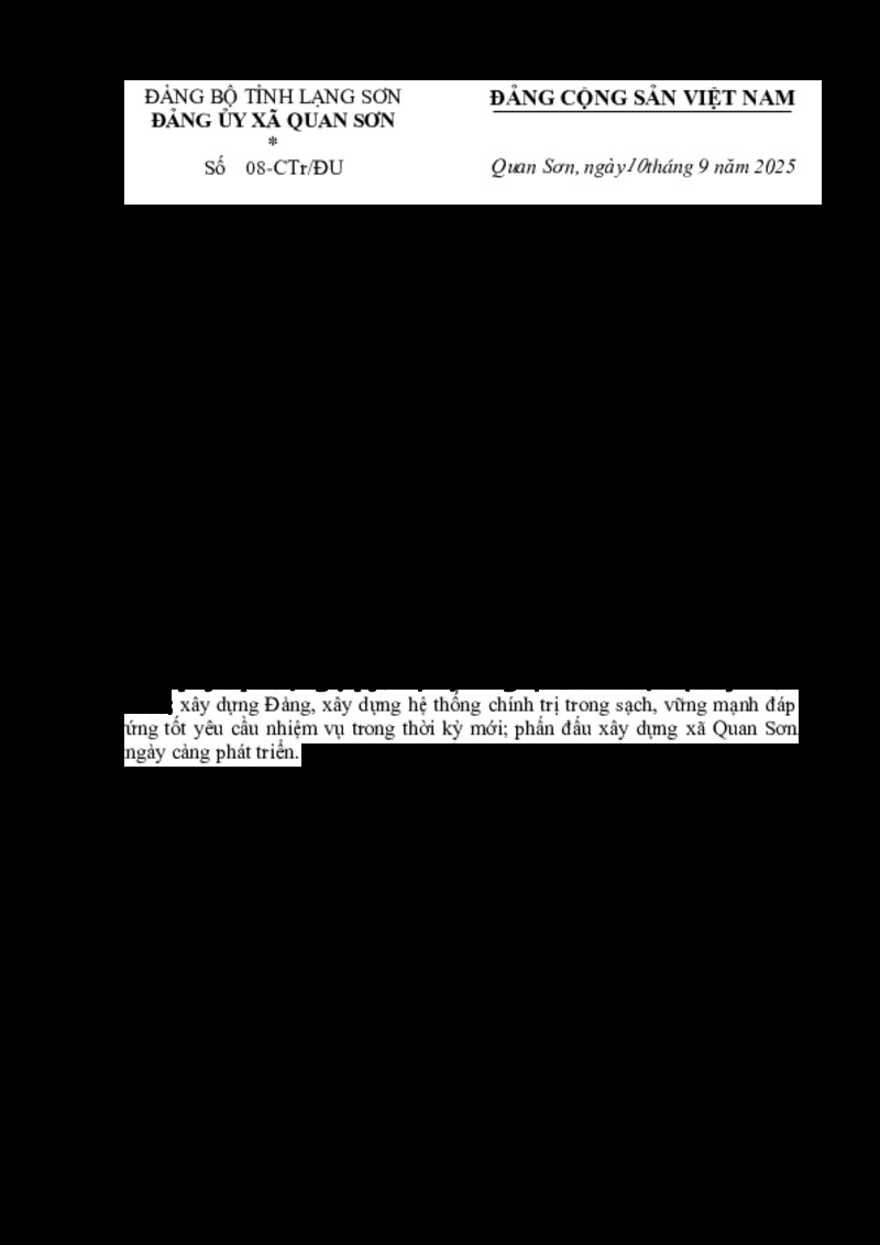 | Tiêu đề văn bản | Công tác toàn khoá của Ban Chấp hành Đảng bộ xã khoá I, nhiệm kỳ 2025 - 2030 | ||