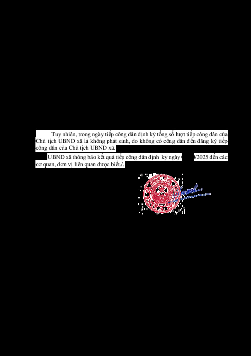 | Tiêu đề văn bản | Kết quả tiếp công dân định kỳ ngày 09/10/2025 của Chủ tịch UBND xã Quan Sơn | ||