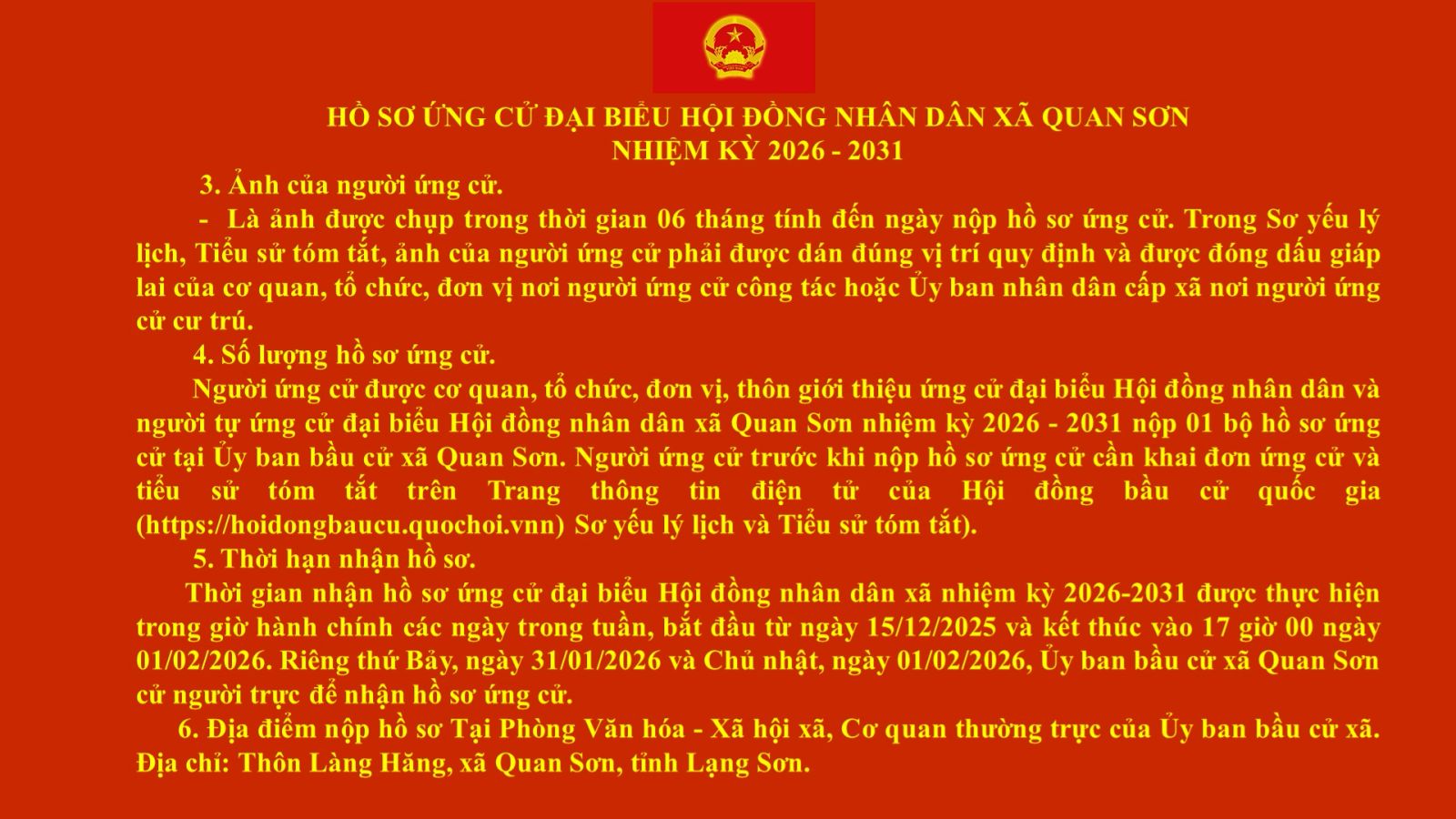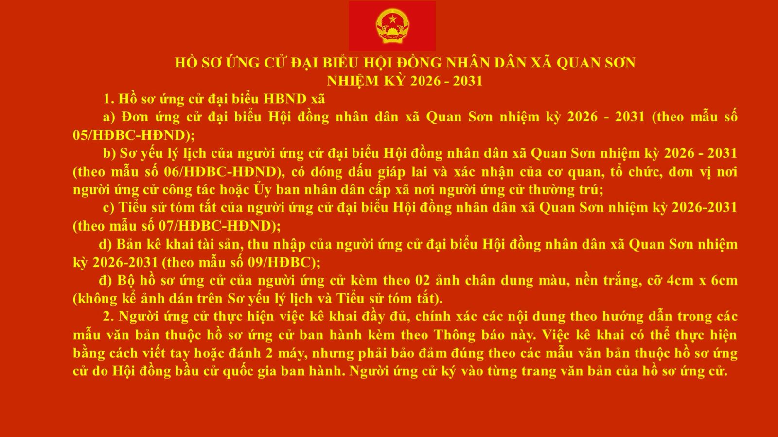 Thông báo về việc tiếp nhận hồ sơ ứng cử đại biểu HĐND xã Quan Sơn, nhiệm kỳ 2026 - 2031:
