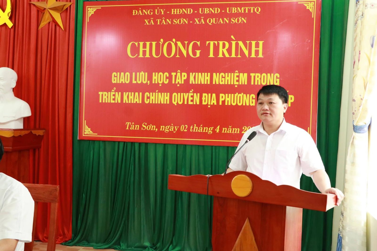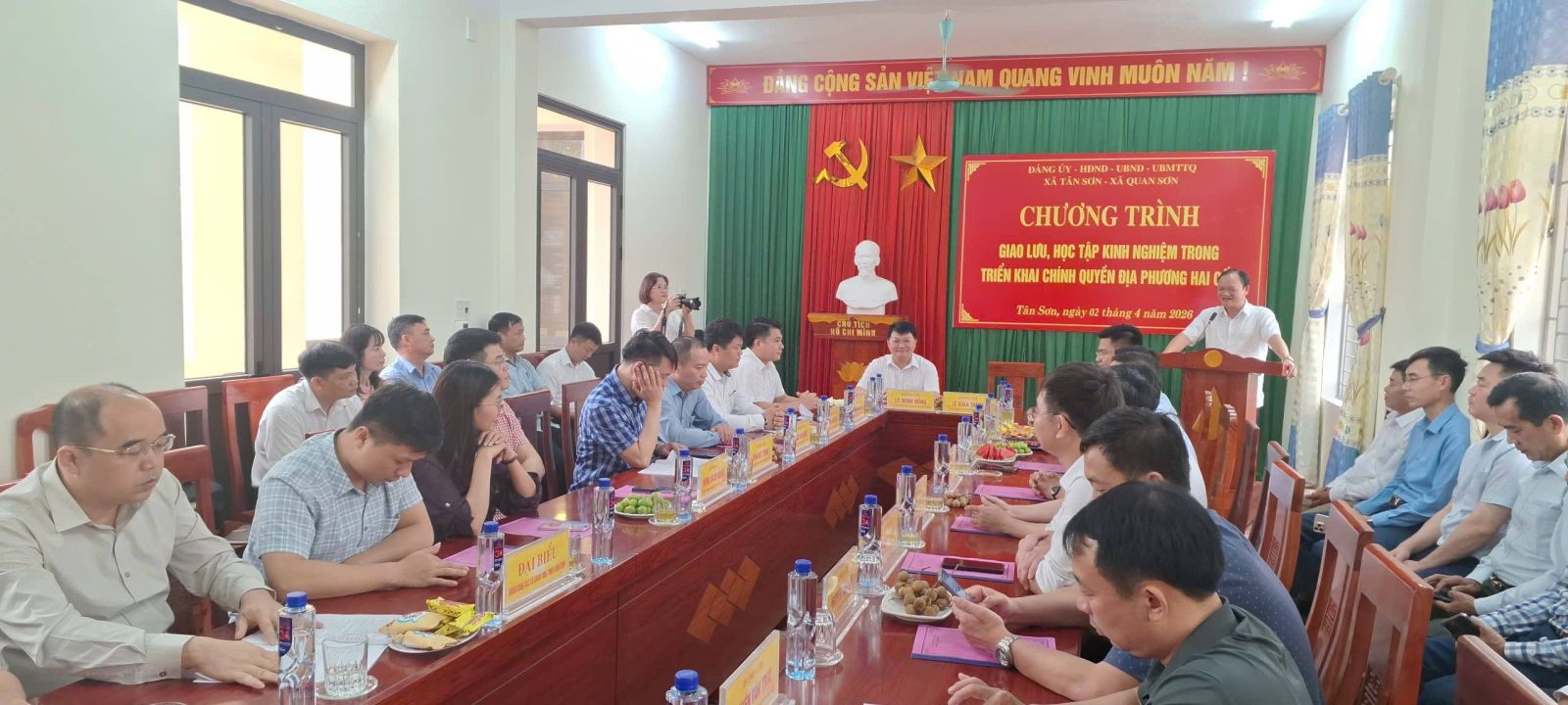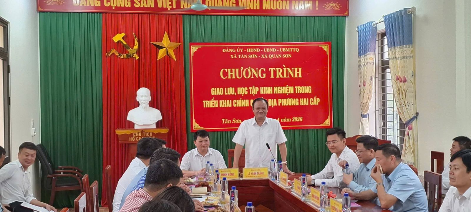Thực hiện Chương trình công tác tháng 4 năm 2026, chiều ngày 02/4/2026, Đoàn công tác của xã Quan Sơn do đồng chí Lô Minh Hồng, Bí thư Đảng ủy - Chủ tịch HĐND xã làm trưởng đoàn đã có chuyến giao lưu, học tập kinh nghiệm với xã Tân Sơn, tỉnh Bắc Ninh. Cùng đi có các đồng chí Thường trực Đảng ủy, HĐND, UBND, Ủy ban MTTQ, các đồng chí Ủy viên Ban Thường vụ Đảng ủy và lãnh đạo các phòng, ban, cơ quan, đơn vị.