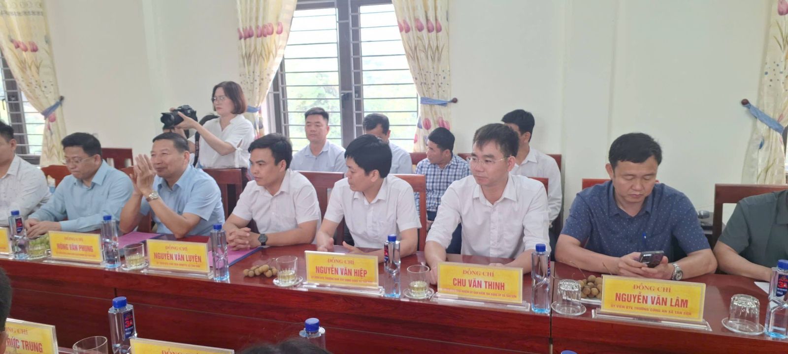 Tiếp và làm việc với đoàn, về phía xã Tân Sơn có đồng chí Lê Xuân Thắng, Bí thư Đảng ủy - Chủ tịch HĐND xã; đồng chí Nguyễn Mạnh Tùng, Phó Bí thư Thường trực Đảng ủy; đồng chí Vi Văn An, Phó Bí thư Đảng ủy - Chủ tịch UBND xã; cùng các đồng chí trong Thường trực Đảng ủy, HĐND, UBND, Ủy ban MTTQ, các đồng chí Ủy viên Ban Thường vụ Đảng ủy và lãnh đạo các phòng, ban, cơ quan, đơn vị.