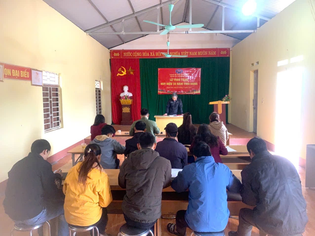 Tại buổi lễ, thay mặt BTV Đảng ủy xã, đồng chí Nguyễn Ngọc Ngà đã trao tặng Huy hiệu Đảng cho đồng chí Nguyễn Bích Thụy là đảng viên vinh dự nhận danh hiệu 30 năm tuổi Đảng.
