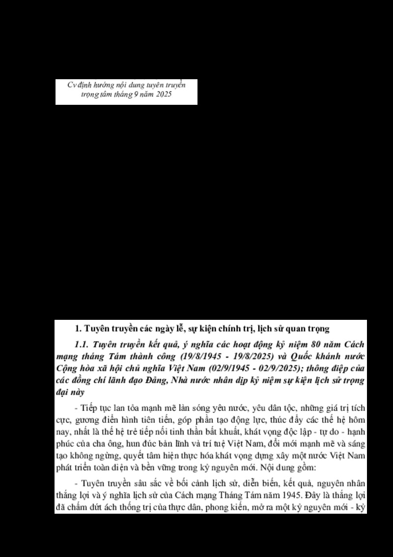 | Tiêu đề văn bản | Cv định hướng nội dung tuyên truyền trọng tâm tháng 9 năm 2025 | ||
