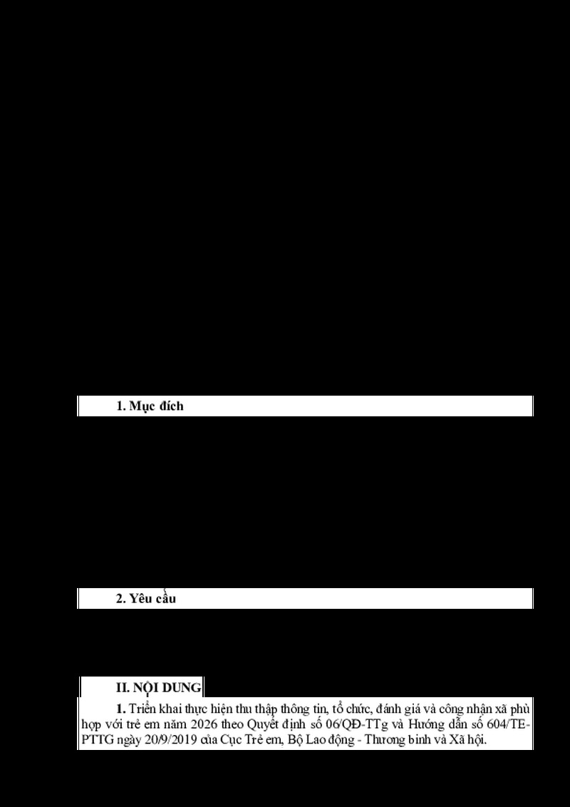 | Tiêu đề văn bản | KẾ HOẠCH Thực hiện Quyết định số 06/QĐ-TTg ngày 03/01/2019 của Thủ tướng Chính phủ ban hành Quy định tiêu chuẩn, trình tự đánh giá và công nhận xã, phường phù hợp với trẻ em năm 2026 trên địa bàn xã Quan Sơn | ||