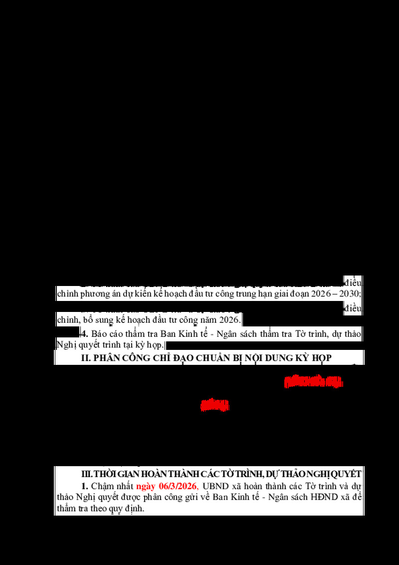 | Tiêu đề văn bản | Thông báo nội dung, chương trình và phân công chuẩn bị kỳ họp thứ 6 HĐND xã khóa XX, nhiệm kỳ 2021-2026 | ||