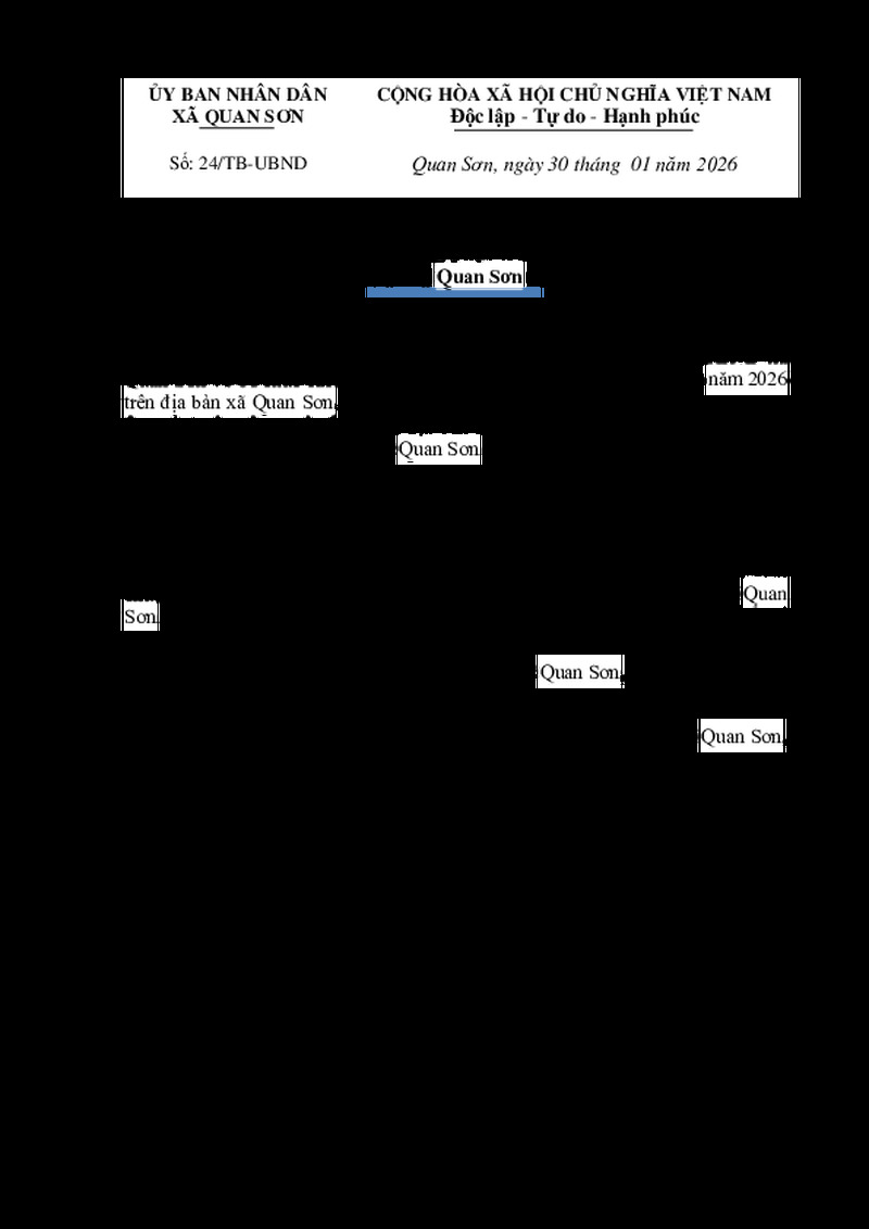 | Số hiệu | 24/TB-UBND | Cơ quan ban hành | |